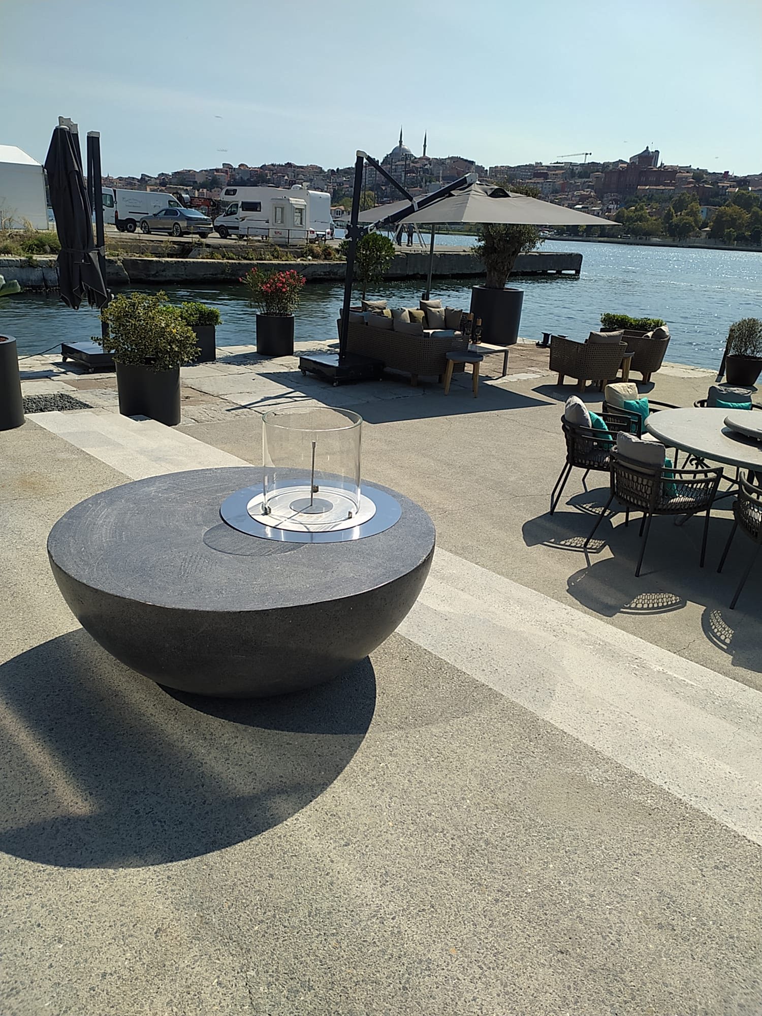 Yuvarlak Mermer Bahçe Şöminesi